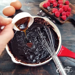 Place the skillet in the oven and bake for 15–17 minutes, until the edges are set and the center is soft but not wet. Keep in mind that this gluten-free brownie will continue to set as it cools, so don’t overbake.